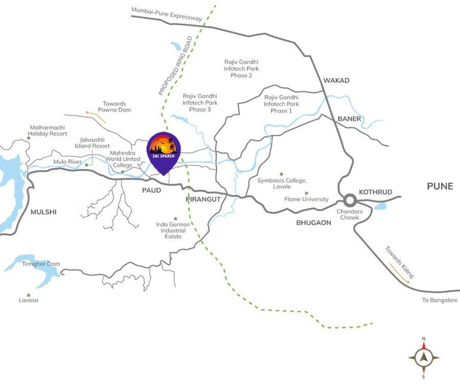 They’re in Paud–Mulshi, Pune West, just 15 minutes from Hinjewadi IT Park and connected to the proposed Pune Ring Road corridor.